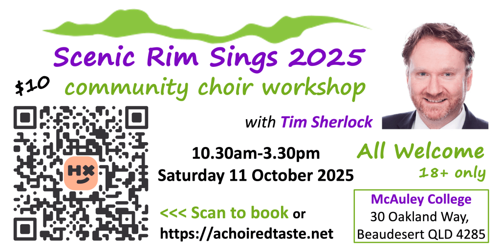 We acknowledge the traditional owners of country on which we live, sing and celebrate – the Mununjali people of the Yugambeh Nation. We pay our respects to their elders’ past and present. We also acknowledge the commitment and sacrifice of First Nations People in the preservation of country and culture – this was and always will be aboriginal land.